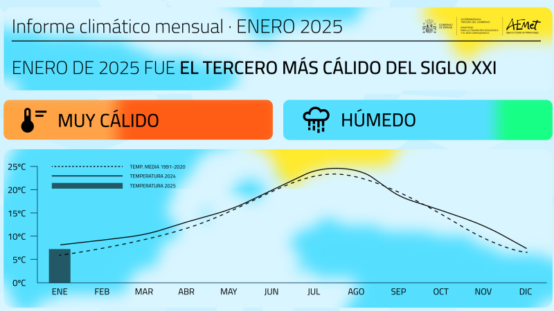 Ifølge det spanske meteorologiske institut, AEMET, var januar 2025 usædvanlig varm og med en overflod af nedbør.