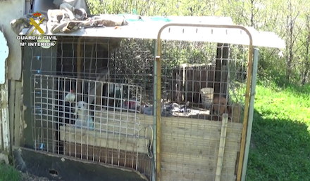 Her blev de 16 hunde fundet i sølle tilstand og alle med tydelige tegn på at have været i kamp mod andre hunde. De er nu alle overladt til en kennel i Huesca.