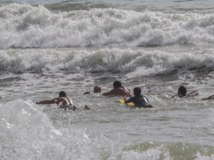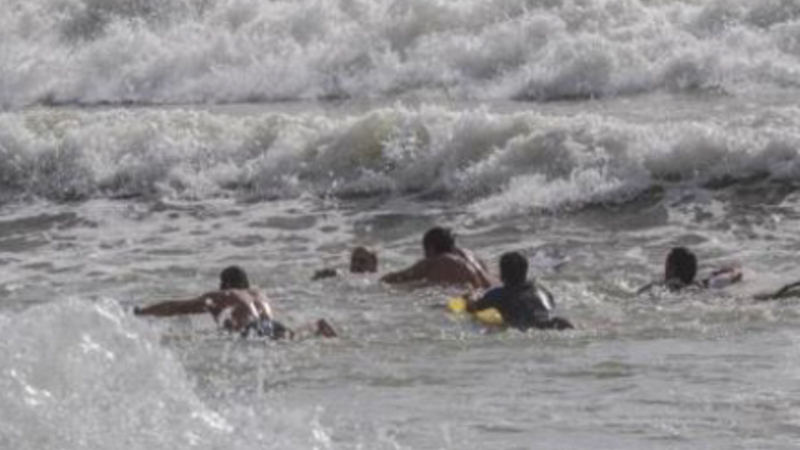 Senere på dagen var den gal igen, da to livreddere måtte redde en uansvarlig svømmer.
