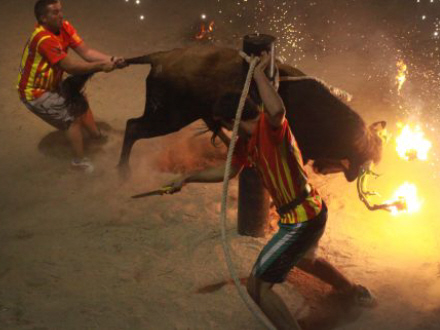 Her binder man benene sammen på en kalv eller tyr, hvorefter der bliver fastgjort fakler eller brandbare bolde på dens horn. Dyret bliver bagefter sluppet løs og flygter i panik ned gennem gaderne.