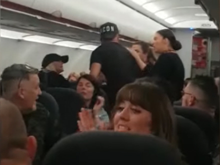 En gruppe venner på polterabend kom op at skændes voldsomt inde i flyet med en gruppe på fire andre mænd og besætningsmedlemmer.