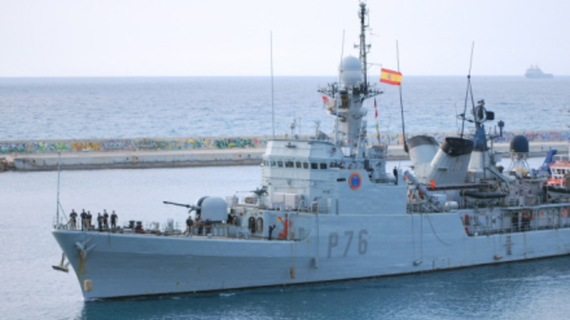 VIDEO: Spansk krigsskib sejler ulovligt ind i britisk farvand med nationalsangen for fuld blæs.