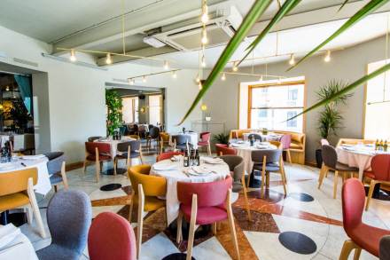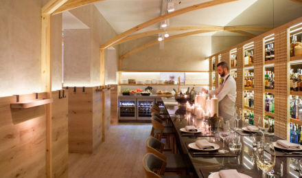 Under restauranten er der en lille gårdhave fyldt med krydderurter og derunder en vinkælder med over 200 forskellige vine. Ovenpå er udsmykningen ret retro med fritlagt murværk, og der er plads til 40 spisende gæster. Smagsprøvemenuer er på programmet her og består af mellem 10 og 14 retter.