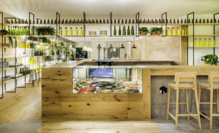 Her kan du få østers, ceviche, carpaccio og tun-tartar i raw-baren, der afspejler en stigende tendens i hovedstaden for såkaldt raw-food – utilberedte retter. Der er også skaldyr og grillet fisk sammen med Gewürztraminer-vin og cocktails.