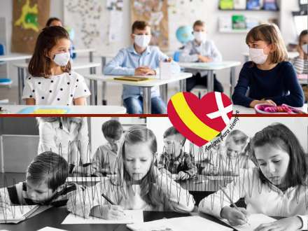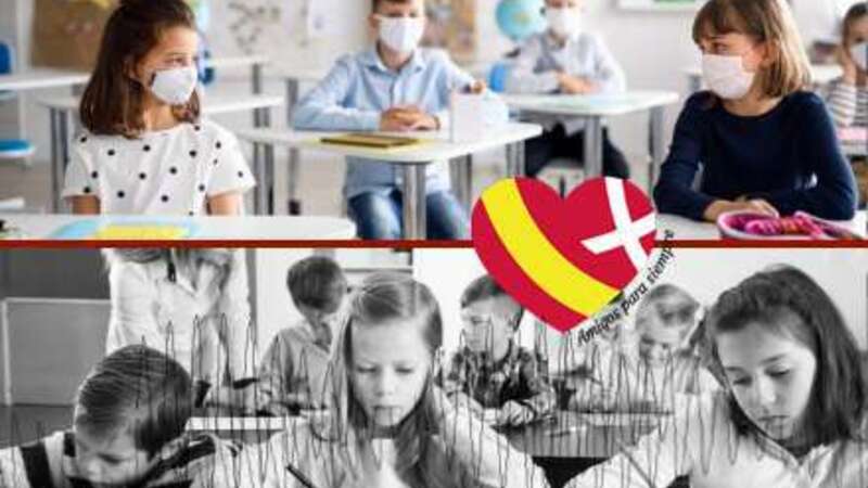 Til daglig ser vi en helt anden virkelighed i Spanien, når den ene af os her på redaktionen henter fem-årigt barnebarn i børnehaveklassen. Med 'mascarilla' og smilende øjne. Og alle får altså lov til at gå fysisk i skole.