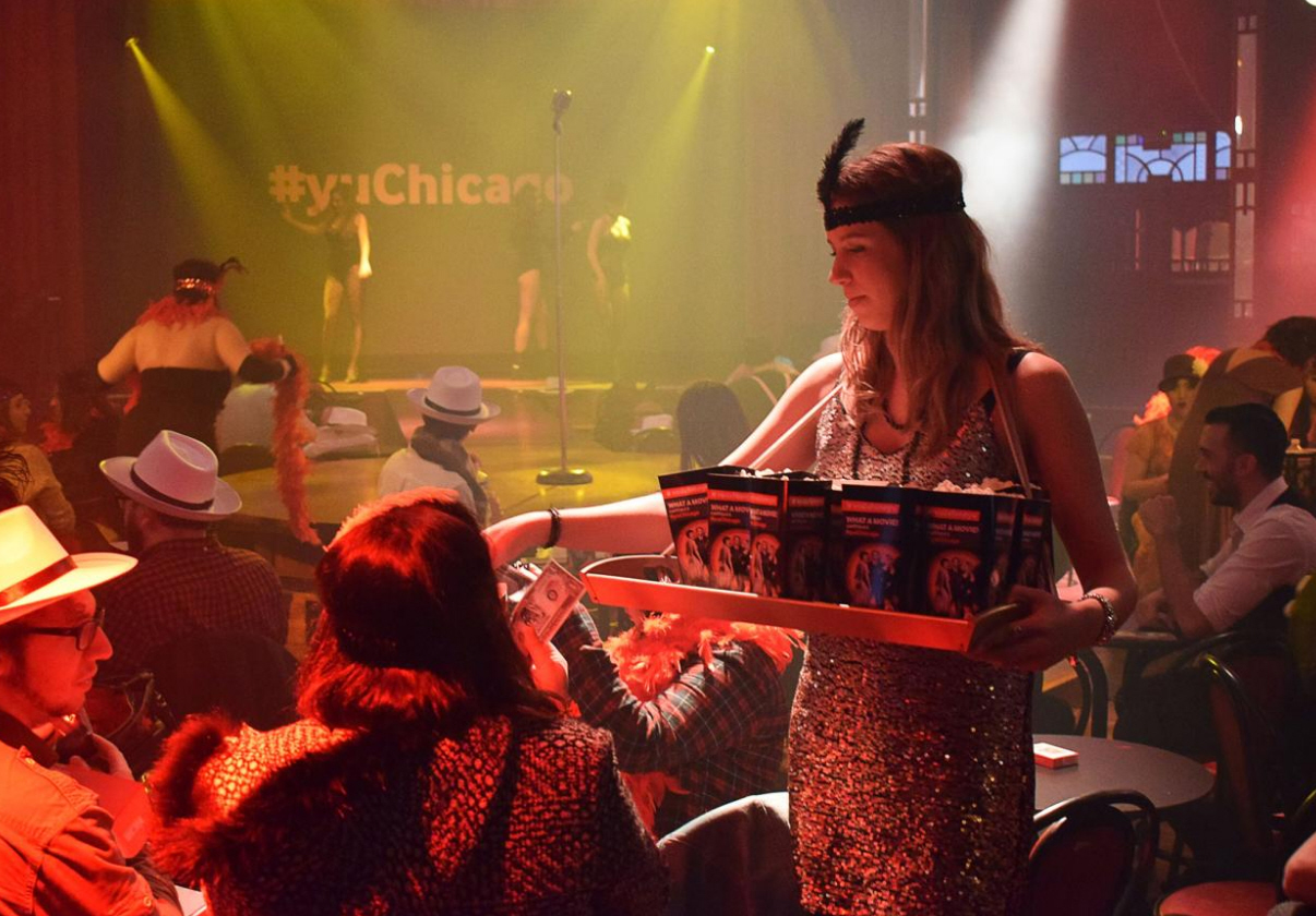 Filmen foregår nemlig ved en nytårsfest. Den kører på lærredet, mens tilskuerne går rundt og er “gæster” ved festen.