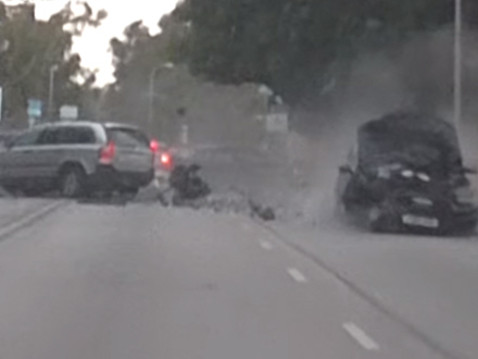 Audien ramte i flere omgange andre bilister, og en af de voldsomme ulykker blev fanget på video: