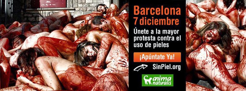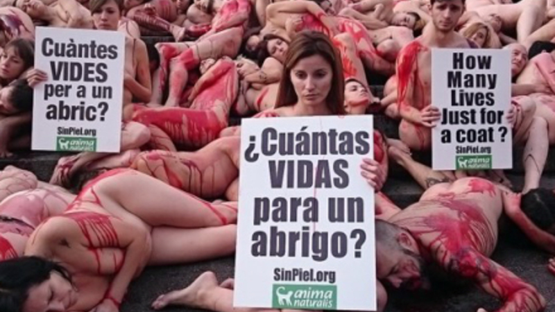 Dyrerettighedsforkæmpere smed kludene søndag i Barcelona for at sætte fokus på dyremishandling i pelsindustrien.