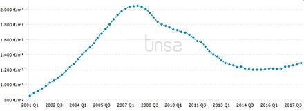 Gennemsnitsstigningen på nye og brugte boliger i Spanien steg i årets første kvartal med 3,8 procent på årsbasis. Det viser den foreløbige opgørelse fra ejendomsvurderingsselskabet Tinsa