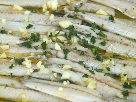 Når vi vil spise dem, tager vi dem ud, dræner dem for eddike og lægger dem i lag i en skål med skindsiden nedad. hvor de bades godt i jomfruolivenolie, hakket hvidløg og persille. De skal være her i mindst 20 minutter, men helst et par timer. De serveres de med brødskiver til at lægge anskoserne på. Jeg plejer at lægge en stor mængde snsjoser i eddike og derefter tage nogle stykker af dem ud gennem flere dage for at lave en lækker forret.