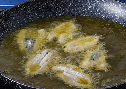 Rengøringsprocessen er den samme, men det er ikke nødvendigt at fryse ansjoserne, da de skal steges .