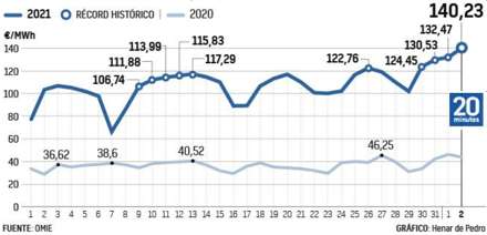 Prisen på elektricitet på engrosmarkedet (pool), som er referencen i Spanien for beregning af den regulerede tarif, der betales af ca. 10 millioner husstande, slog otte rekorder i august og vil ifølge en række eksperter fortsætte med at stige i september.