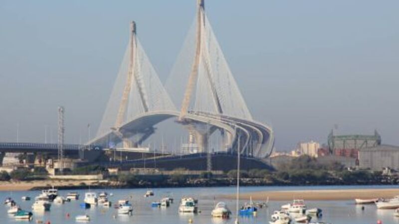 Forsidebilledet er broen ‘Puente de la Constitución de 1812’, som blev færdig 2015. Vi vil køre over den ved ankomsten til Cádiz. Den har en frihøjde for skibspassage på 69 meter, hvilket er det næsthøjeste i verden. Den højeste frihøjde har fortsat broen Verrazano Narrows over Hudson-floden i New York.