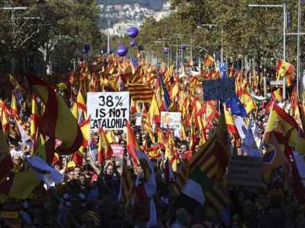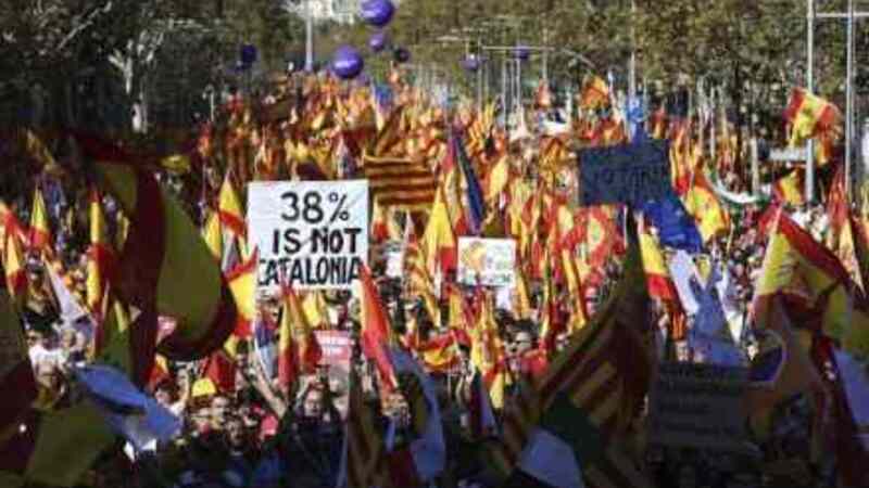 Søndag middag gik catalanerne igen i demonstration. Ifølge spansk TV var der en million, ifølge dansk TV 300.000. De bar spanske, catalanske og EU flag og forlangte, at “el seny” - den sunde fornuft - skulle komme tilbage efter den ulovlige erklæring af uafhængighed. Også i Madrid var tusindvis på gaderne til støtte for et enigt og forenet Spanien.