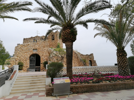 Vi kigger neden under en af Mijas’ mest besøgte turistattraktioner: La ermita de la Virgen de la Peña, hvorfra man kan nyde en storslået udsigt over kysten. Selve kapellet er ikke interessant for os i denne forbindelse, men det er fundamentet derimod. Her stod nemlig det oprindelige muslimske vagttårn, og det var her man fandt den lille træfigur, der i dag er byens skytshelgen.