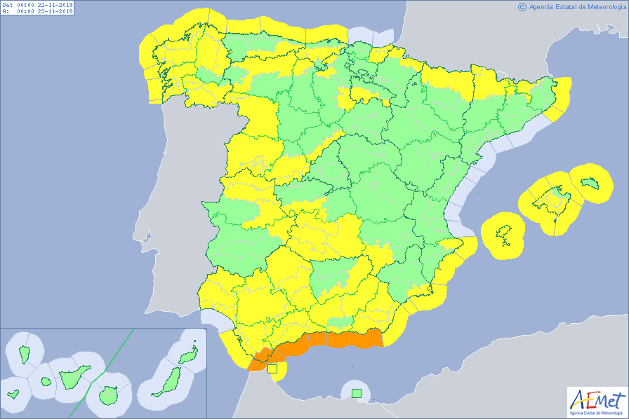 Både fredag og lørdag bliver vinden ret heftig med hårde vindstød. Først kommer den fra syd, men drejer efterhånden i vest på hele fastlandet og Balearerne.Af samme årsag ventes der også oprørt hav og høje bølger i alle de nævnte områder.