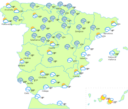 Faldende dagstemperaturer til halvøens nordlige- og indre egne i syd, men særligt mærkbart i nordvest og den øvre Ebro-dal. Vi har det varmere end normalt på De Kanariske Øer.