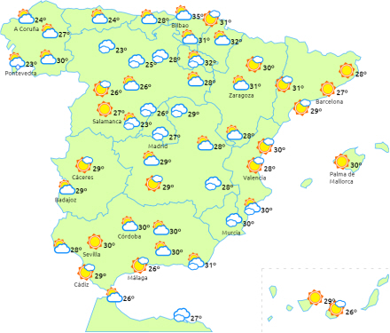 Faldende dagstemperaturer til den vestlige halvdel og de indre egne af halvøen især i Galicien, selvom de forbliver højere end normalen helt i nord - især i Baskerlandet. Nætterne bliver lunere i en god del af den nordlige halvdel, og ellers få ændringer i resten.
