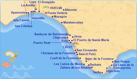 Ud over en herlig ferie i en af fiskerbyerne byder området også på vandreture eller rideture i det kuperede terræn i baglandet, besøg i en af de charmerende landsbyer, gastronomiske overraskelser på en af de mange fiske- og skaldyrs-restauranter, hesteshow og bodega-besøg i Jerez.