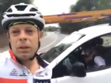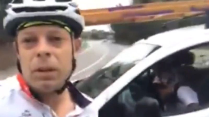 Den ene cyklist hiver sin mobil frem og begynder at filme.