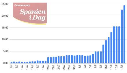 Af de vigtigste turistdestinationer i Spanien ligger nu kun De Kanariske Øer under grænsen med et smittetal den 18/8 på 24,5 og projicerer man kurven nogle dage frem, er det så godt som sikkert, at smittetallet passerer grænsen på de 30.