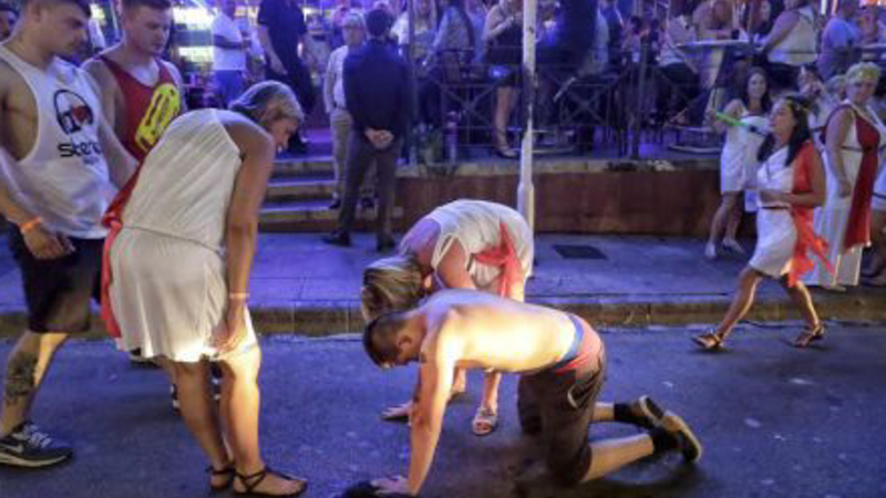 Det hårde party-natteliv er i højsædet i det spanske drukferie-område Magaluf på Palma de Mallorca. Og intet stopper tilsyneladende festen – end ikke døden.