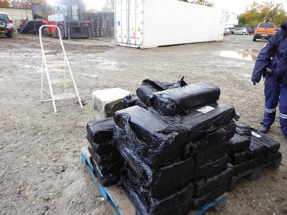 I poserne og pakker var der 593 kilo hash og 44 kilo pot.