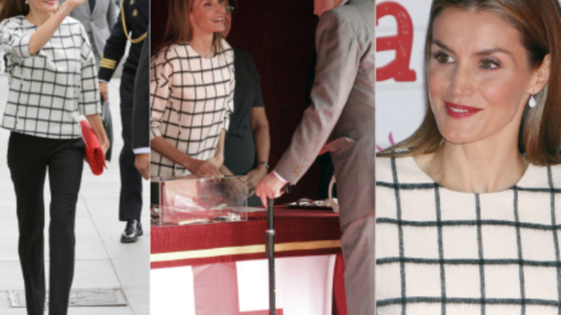 Og endelig blev Letizia set med samme outfit, da den ellers nok så glamourøse dronning deltog i et Røde Kors-arrangement i Madrid i oktober.