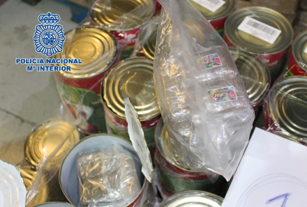 Policía Nacional har beslaglagt 780 kilo hash gemt i dåser med hakkede tomater, der var gjort klar til at blive sendt til Danmark.