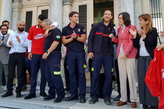 De tre spanske brandmænd og to danske frivillige blev helt frifundet mandag ved retten i Lesbos.