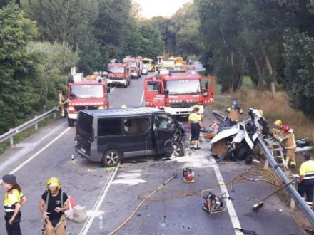 Fire mennesker omkom i et frontalt sammenstød mellem en personbil og en varevogn nær Vidreres, Girona, og to yderligere personer blev kvæstet - heraf én alvorlig. Han var dansker og døde senere af sine kvæstelser.