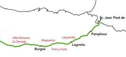 Før man ankommer til Burgos passerer man Atapuerca, hvor en af verdens mest interessante arkæologiske udgravninger foregår. Sierra de Atapuerca, eller Atapuerca-bjergene, er enormt rig på fossile udgravninger, urmenneskets stenredskaber, knoglerester fra både mennesker og dyr - ofte eksotiske dyr, som holdt til på egnen for tusindvis af år siden, som løver og leoparder.