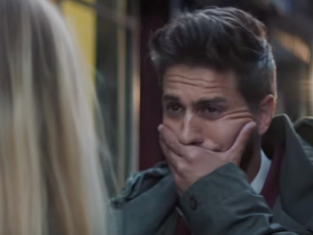 Se videoen her, hvor en ung mand bliver drøn-forelsket i en kø til at købe lotterisedler: