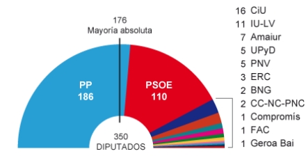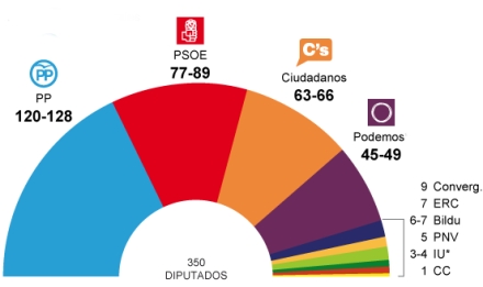 Spanien står foran et historisk valgresultat, hvor fortiden med absolut flertal til PP eller PSOE bliver sprængt i stykker. Slut med enerådigheden til den blå eller røde side i Parlamentet.