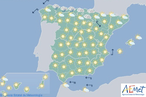 Diset ved Middelhavskysten og mulighed for lidt morgentåge-banker i Galicien, det nordlige Atlanterhavs-område og lokalt i den indre, østlige del af halvøen.