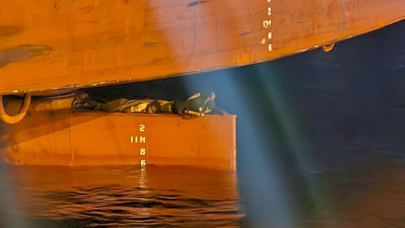 Otte dage klamrede to unge mænd sig til roret på kæmpeskib