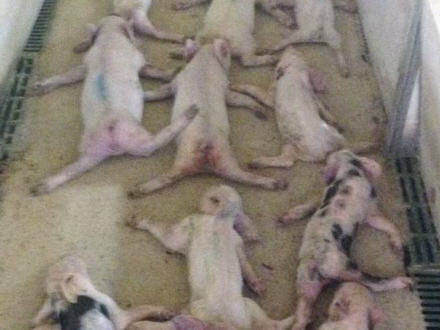 79 smågrise mistede livet på grund af drengenes handlinger, men det forhindrede dem ikke i at lægge optagelsen ud på WhatsApp.