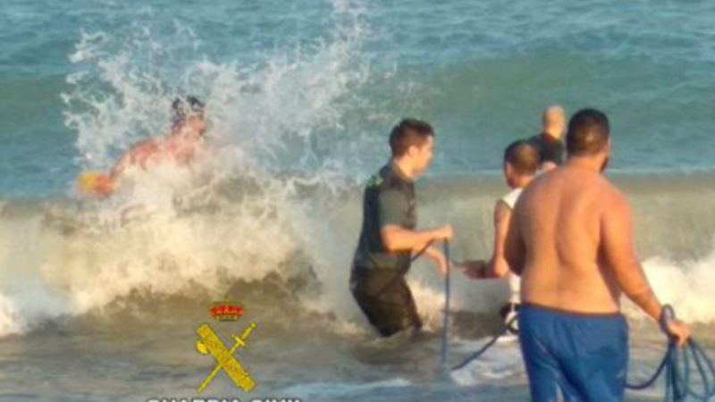 VIDEO: Fire snarrådige betjente fra Guardia Civil reddede i går to badende fra at drukne.