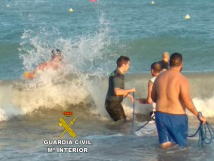 “Eduardo, José Ramon, Antonio og Pablo, der hører til Guardia Civil i Vall d’Uixó, gik i dén grad i vandet for at redde to badendes liv på Chilches-stranden.”