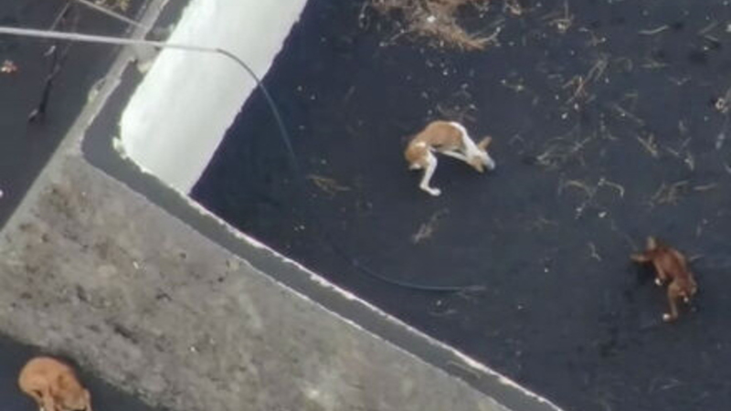 VIDEO: I ugevis har droner fodret hunde, der er fanget i en lomme af lava på La Palma. I dag vil man forsøge at redde dem ud.