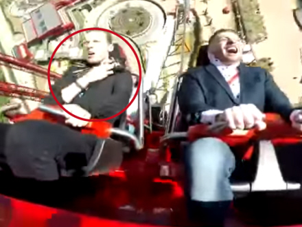 VIDEO: Passager i Europas hurtigste rutsjebane fik sig et gevaldigt chok, da en fugl kom i vejen for hans ansigt.