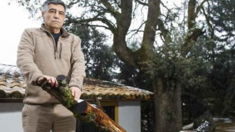 José Velez, en farmaceut fra El Escorial nær Madrid, fik en bøde på 100.000 euro, da han fældede et træ på sin egen grund. Han mener, det er ganske urimeligt.