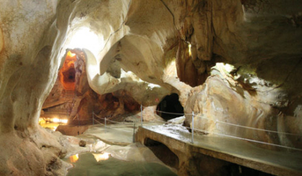 Her har langsomme dryp af sivevand fyldt med karbon, har resulteret i fascinerende former af hulens mystiske skønhed, som overrasker mange gæster.