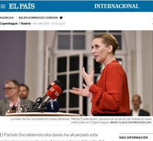 I omtalen af Mette Frederiksens succes i Danmark fokuserer den spanske presse på, hvorledes hun med de tre støttepartier er lykkedes at komme igennem med en aftale om retningen for den nye mindretalsregering, der endda vil give hende muligheden for at lovgive bredt - altså også sammen med partier, der er i den modsatte side af den røde blok.