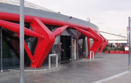 Pladsen med kommunikationstårnet ligger foran det stadion, hvor Spanien i 2009 vandt over Tjekkiet i Davis Cup-finalen