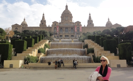 Imponerende vandfald fra Museu Nacional d'Art de Catalunya i Parc de Montjuïc