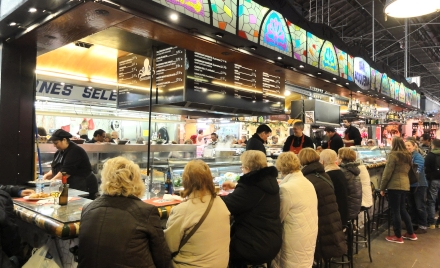 Der er en forrygende stemning både på og rundt om markedet, hvor der i arkaderne ligger hyggelige barer og restauranter.