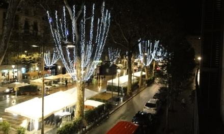 Udsigten fra værelsets balkon mod nord i retning Plaça Catalunya