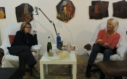 Lars arbejder med et helt specielt teknik. Han maler på 3D-rammer, som Silvia har bygget. De består af enkelt-felter, hver beklædt med sin individuelle lærredsstruktur. Det enkelte felt er et et motiv for sig, mens ´fællesskabet’ af felterne danner det samlede motiv.