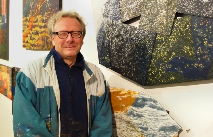 Lars byder velkommen. På værket til højre ses hans teknik tydeligt